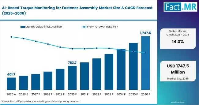 ROCKVILLE, MD, UNITED STATES, April 14, 2026 /EINPresswire.com/ — According to Fact.MR’s latest analysis, the Germany AI-based torque monitoring for fastener assembly market is valued at approximately USD 58.6 million in 2025, and is projected to reach USD 65.9 million in 2026, expanding to USD 257.3 million by 2036. The market is expected to grow at a CAGR of 14.4% during the forecast period, creating an incremental opportunity of over USD 190 million.